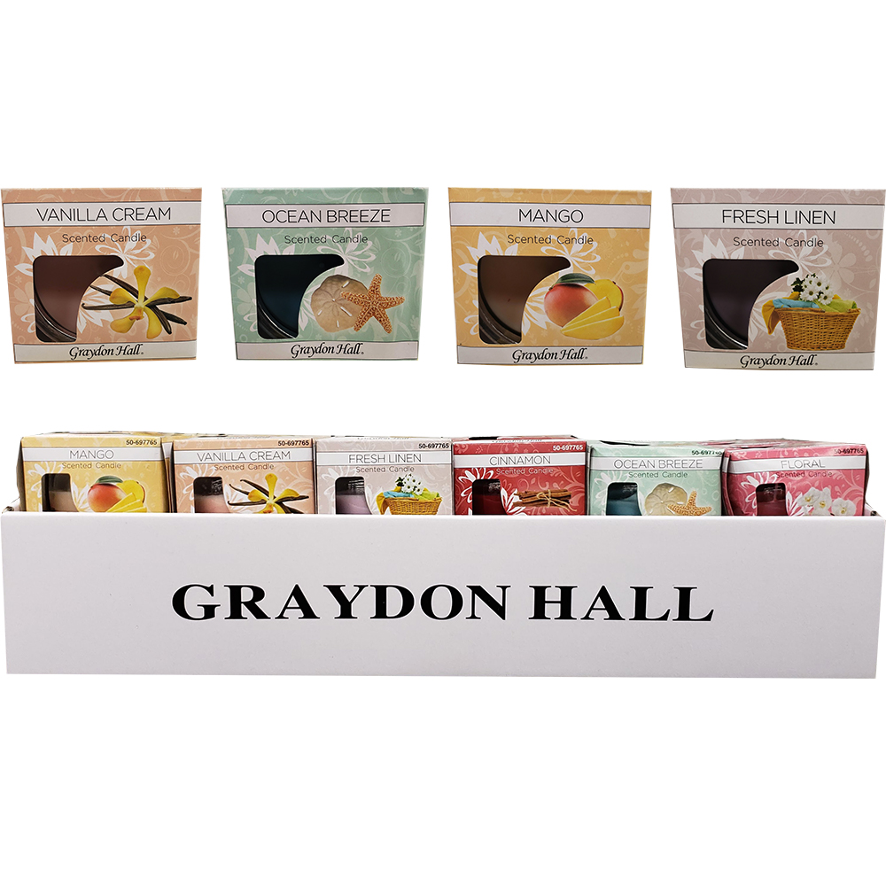 GRAYDON HALL SCENTED GLOBE CANDLE 3OZ ASST PDQ