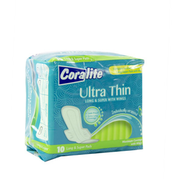 CORALITE ULTRA THIN PADS LONG/ & SUPER W/WINGS/10 COUNT